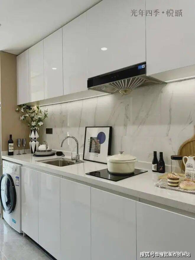 开放式厨房,则做了个2米长的整体橱柜,并配置了方太电磁炉(或同品牌)、吸油烟机。