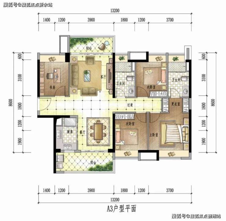 5.8m宽厅+12平主卧+270°瞰景飘窗