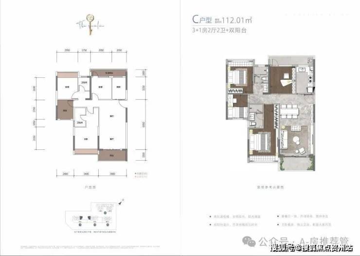 【C户型:约112.01㎡ 3+1房2厅2卫】