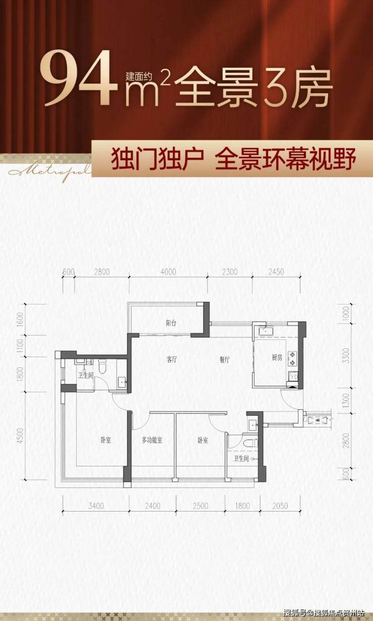 94㎡的3房2厅2卫,设计的是横厅南北通透格局,客餐厅6.3米开间,LDKB一体化,四开间朝南,卧室全南向,3个卧室分别做到了主卧15.3㎡/次卧8.5㎡/次卧8.16㎡(包含墙体飘窗),L型厨房,公卫三段式分离,得房率约77%(不含赠送),阳台主朝东北向。