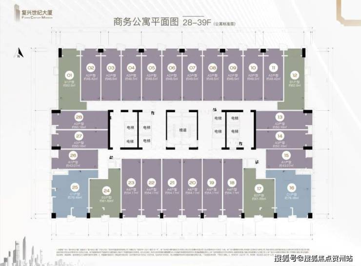 梯户比:公寓8梯28户,办公6梯15户,商业4梯34户