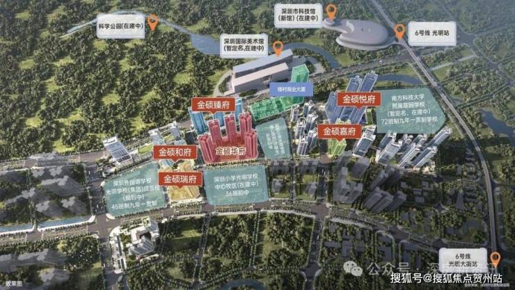 满京华金硕,由满京华集团开发,位于光明区光明中心区光辉大道与狮山三街交汇处,项目所在区域是光明规划最宜居,居住小区板块最大的片区,北侧靠近科学公园,东侧及南侧是深圳小学光明学校狮山校区及初中校区。