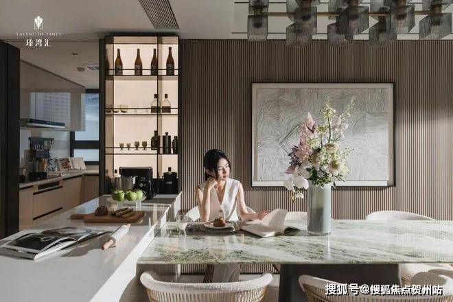 独立岛台设计:西厨空间与餐厅紧密相连。