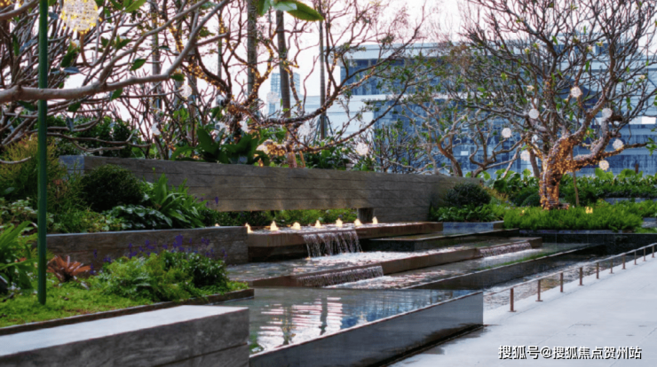 梦幻叠水景观、梦幻花境、风雨连廊、云雾森林...从进入社区开始,精心设计的景观动线就会让人自然放松下来,实现从城市喧嚣到私人领域的完美过渡。