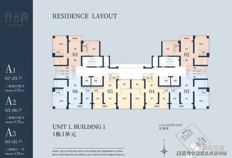 🔹1栋一单元A1、A2户型:面积约为129㎡