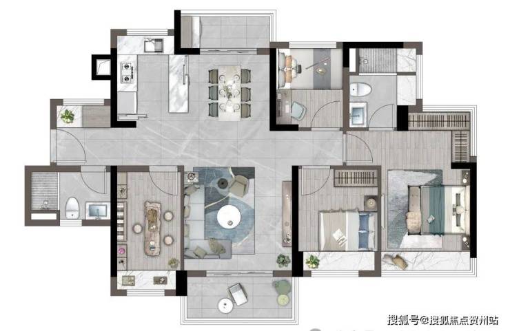 89㎡丨三房两厅两卫; LDKG一体化设计;U型厨房;约6米双面宽超大景观阳台;独立卧室带独立卫浴;主题设计儿童房