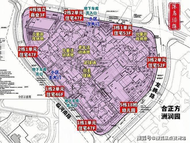 合正方州瀚府,总占地面积约3.05万㎡,总建筑面积约27.4万㎡,计容建筑面积约20.11万㎡,容积率6.6,绿化率40.01%,共由6栋总高46-53层的住宅组成,其中1栋1单元/2栋1/2单元住宅47F,1栋2单元住宅46F,3栋1单元住宅53F,3栋2单元住宅52F,5栋是1所18班制幼儿园,园区内规划有多个儿童游戏场地,羽毛球场,足球场。
