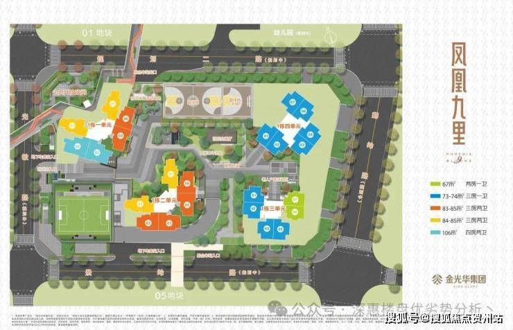 金光华凤凰九里:共分7个地块开发,总占地面积约11万㎡,其中开发建设用地面积约8.18万㎡,总建筑面积约48.95万㎡,容积率6.0,共由20栋超高层住宅+1栋办公楼组成,预估总房源量超4700套!项目目前在售67平-106平两至三房户型