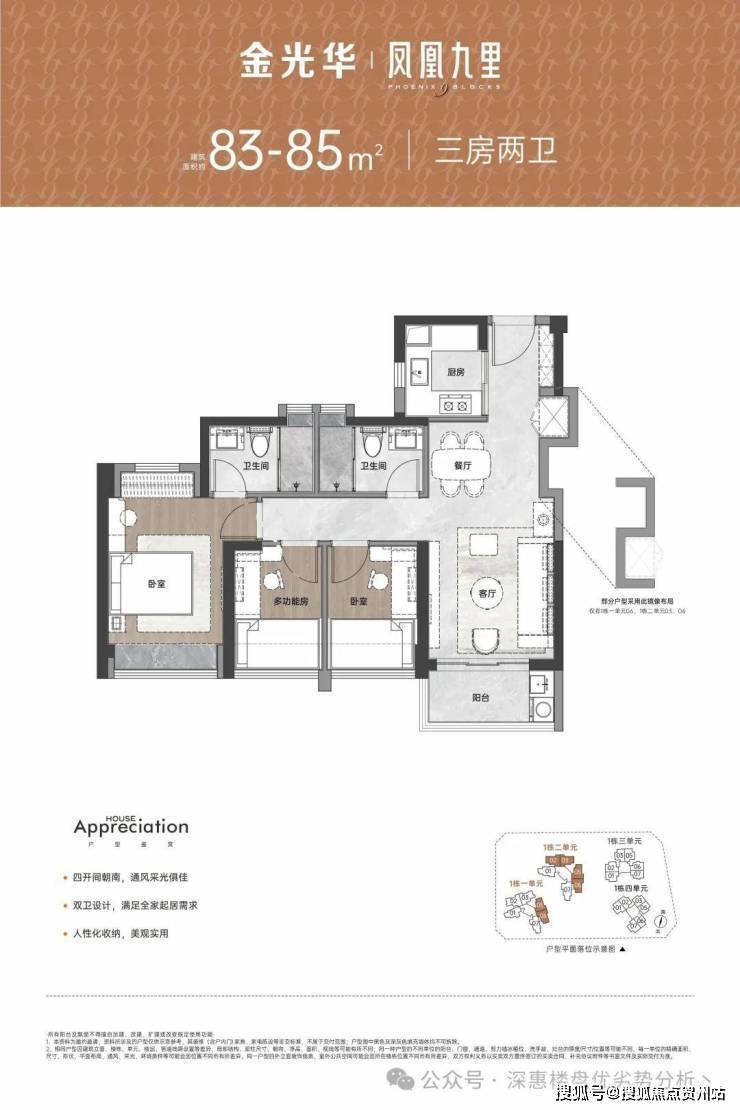 在售户型四:83-85平米三房两卫:总价区间在280万-320万左右