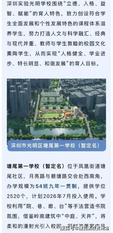 去年官宣:据光明教育局官方公众号发文:新集团+新模式,光明区再添两个基础教育集团,深圳实验学校正式落地在光明凤凰街道塘尾社区,月亮路与碧塘路交会处西南角,办学规模为54班九年一贯制,将大大提升及带动光明的教育质量及水平,同时还在深中学区范围,即双名校加持(最终学区划分以当年教育局政策为准)