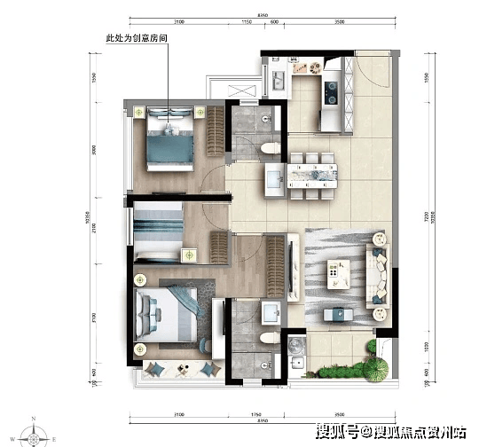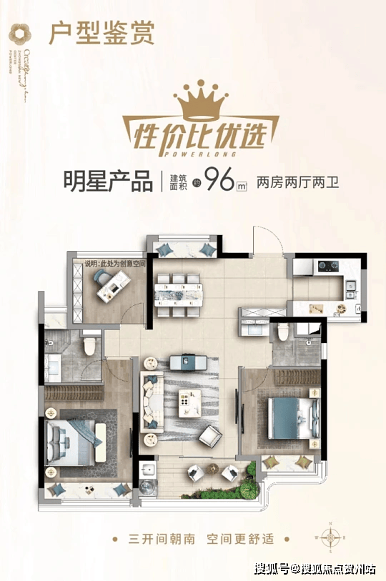 · 94-96㎡三房两厅两卫:总价约 122-135 万,主力户型,南北对流,双阳台设计。