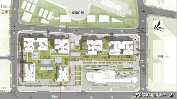 项目一期由福民路、皇岗二街、皇岗四街、皇岗五街围合而成,总占地面积约3.14万㎡,总建筑面积约27.3万㎡,住宅建面约为20.3万㎡,商业建面约为7万㎡;整个项目以“立于城市中轴,缔造时代标杆”为核心理念,旨在构建一个融合现代与历史人文特色的城市大综合体。