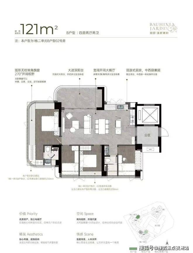 小区有485套纯住宅,车位595个,容积率5.14,共有三栋住宅,每栋做了36-37F高的4梯5户设计,每户都有专梯入户空间。