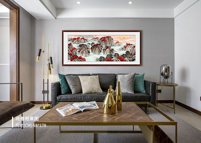 一幅轻松明快、淡雅柔和的客厅国画,在会客时会带给您愉悦的心情。不管与什么材质的沙发都能搭配,能营造出让您高雅品位、田园自然的氛围。国画山水画特别是现代简约客厅装饰画的理想选择,也可以根据个人喜好选择。