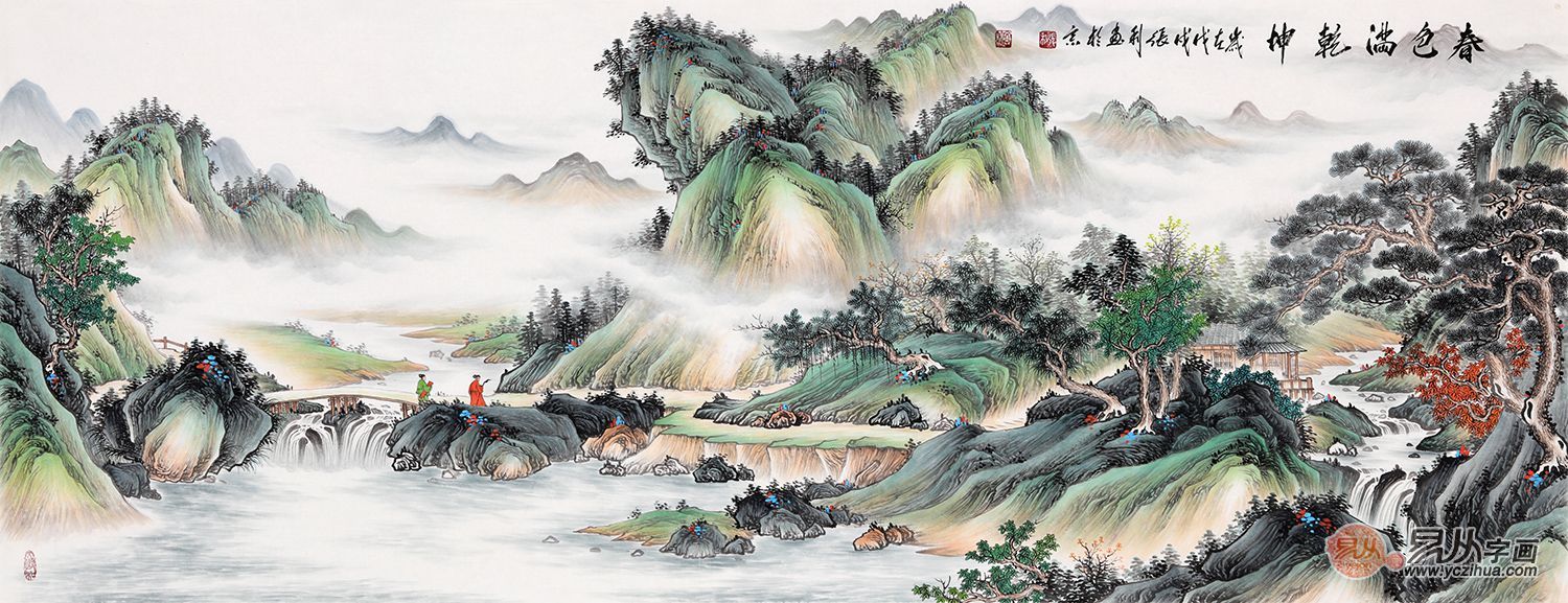 客厅挂画,选择山水画推荐三:【精品】仿古青绿国画 张利精心力作《春色满乾坤》