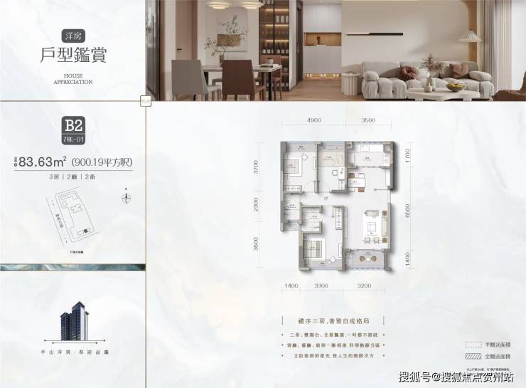 “小户型亦能成就品质典范!双飘窗与南向阳台构筑90%高引光率系统,客餐厨一体深化家庭互动,动静分区精控生活韵律。想象晨光将飘窗染成暖玉,您手捧咖啡凝视阳台新绿——这精心丈量的方寸之间,正是理想生活的黄金比例。”