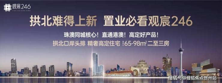 “观宸246”位居拱北口岸头排,珠澳同城核心板块,城市中心+口岸物业双极加持,近10年来距离拱北口岸、港珠澳大桥口岸最近的纯住新盘,左手澳门世界级休闲娱乐配套,右手拱北城市烟火生活,坐享醇熟配套,畅享港珠澳三城无界生活。