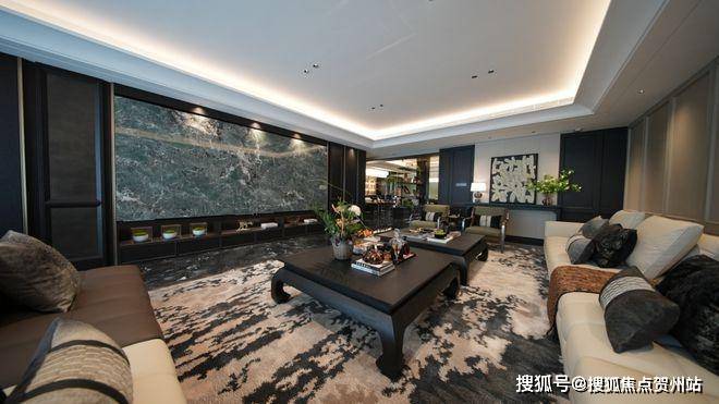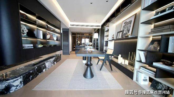 比如建面约325㎡采用的酒店式暗奢风格,它融合了极简与轻奢,低调中透漏着奢华,是彰显个人品味的绝佳场所。