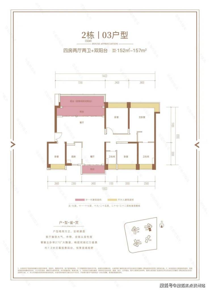 (2)2梯2户设计:18.2米巨幕采光面、7.2米景观阳台;