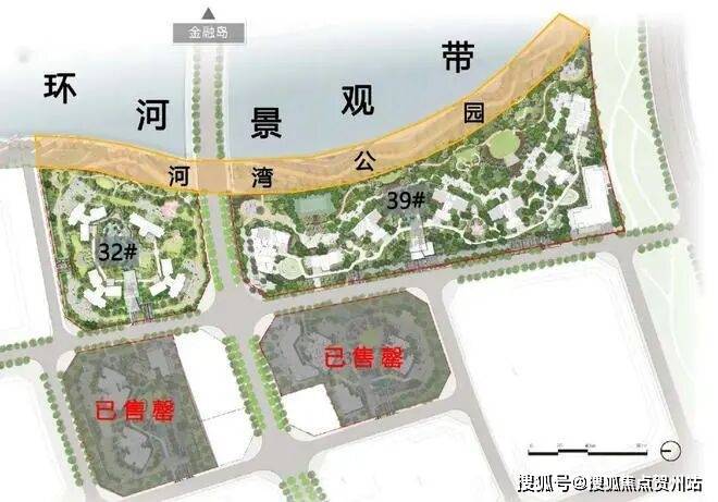 看下图,河湾公园的滨水景观带在家门口展开,一直延伸到整个项目。