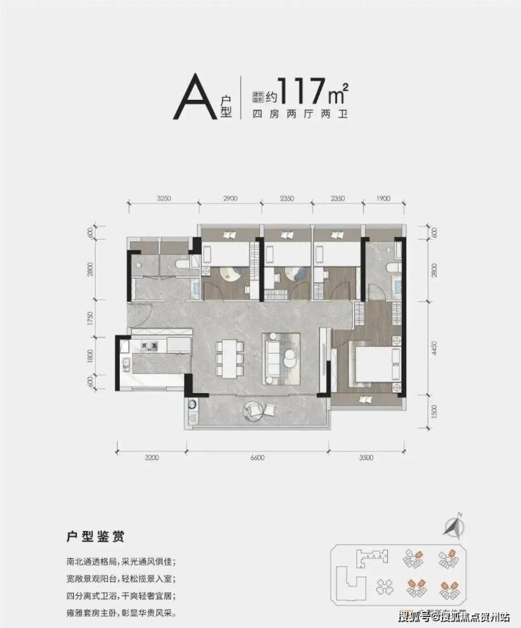 108㎡户型做的是横厅,动静分区,四房两厅一厨两卫一阳台的格局,这种户型最近几年非常常见了,优点就是横厅显得客厅更宽,有宽景阳台,室内通透性略好一些。