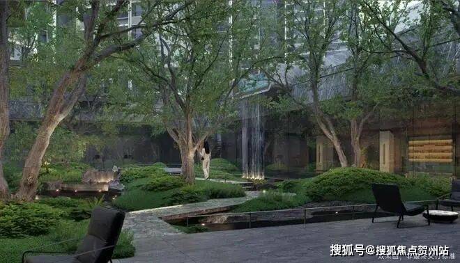 ③度假感下沉庭院:东方园林山水造诣,层级叠错。自然地形结合叠水叠石,形成特色森系庭院
