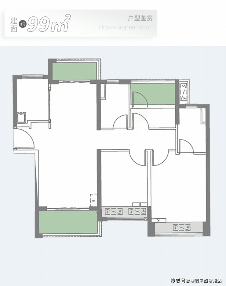 ·高层住宅3室2厅2卫户型:建筑面积为124㎡,南北通透,动静分离,干湿分区,厨房与餐厅相邻,卧室朝南,卫生间明亮宽敞。参考均价为9140元/㎡。
