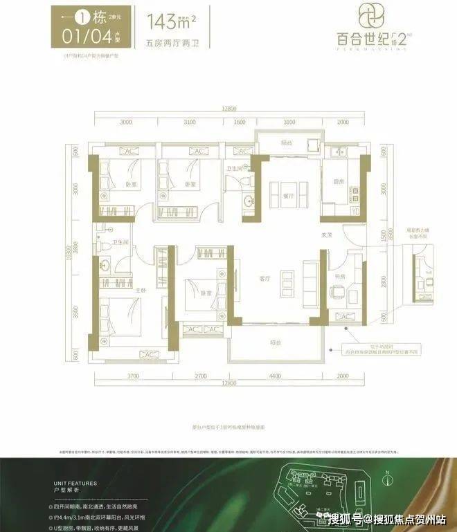 建面约143㎡的5房2厅2卫