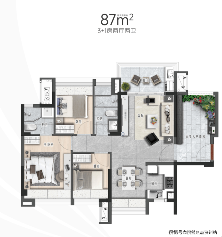 尤其87㎡,户型虽小,空间规划超绝,不仅有阳台,还带入户花园,简直是刚需们的“梦中情房”。