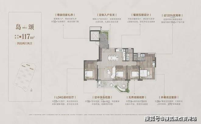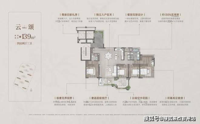 全明方厅布局:首创LDKGX一体化设计,全南向开间布局,搭配270°环幕全景视窗,将天际与园景尽收眼底,让阳光在室内肆意流淌。超大社交场域,会客、家宴、派对等功能均可随心切换。