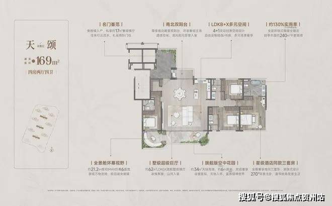 全总统套房配置:建面约169㎡天颂户型,专享3套间奢适配置,主卧套房可媲美五星酒店套房设计,奢逸生活触手可及。