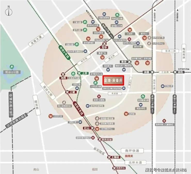 优越的地理位置:金地宸峯府位于深圳龙华区工业路与人民路交汇处,紧邻壹方天地 C 区。周边有多条城市主干道,如福龙路、布龙路、景龙路等,七纵四横的交通网络,让您可以快速通达城市各地。