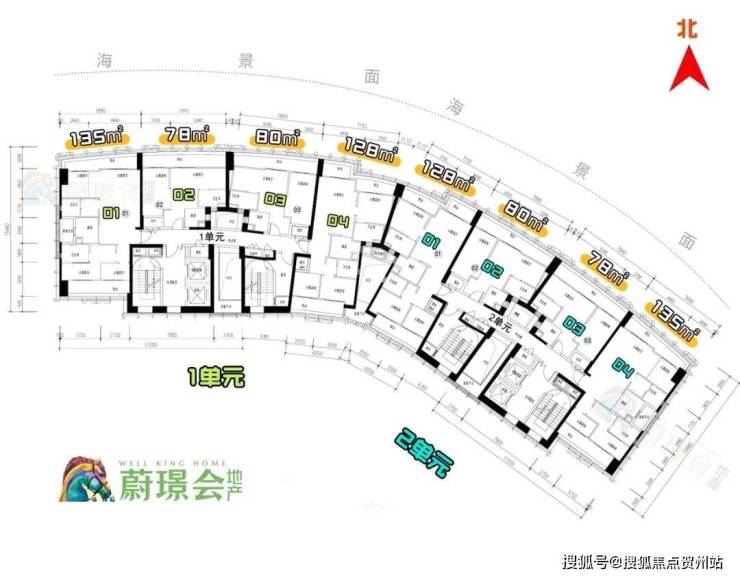 大楼分为1/2单元,1单元部分海景,2单元全海景