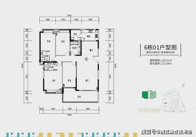 在售的6栋,两梯两户,建面约219-235㎡四房大平层户型。