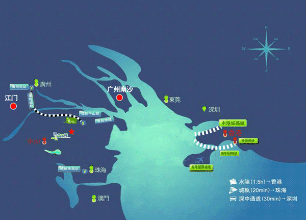 随着深中通道,深茂铁路、港珠澳大桥等国家级项目建设的推进,中山迎来对外交通发展的黄金时期。即可到达周边六大城市,形成珠三角 1 小时经济生活圈。