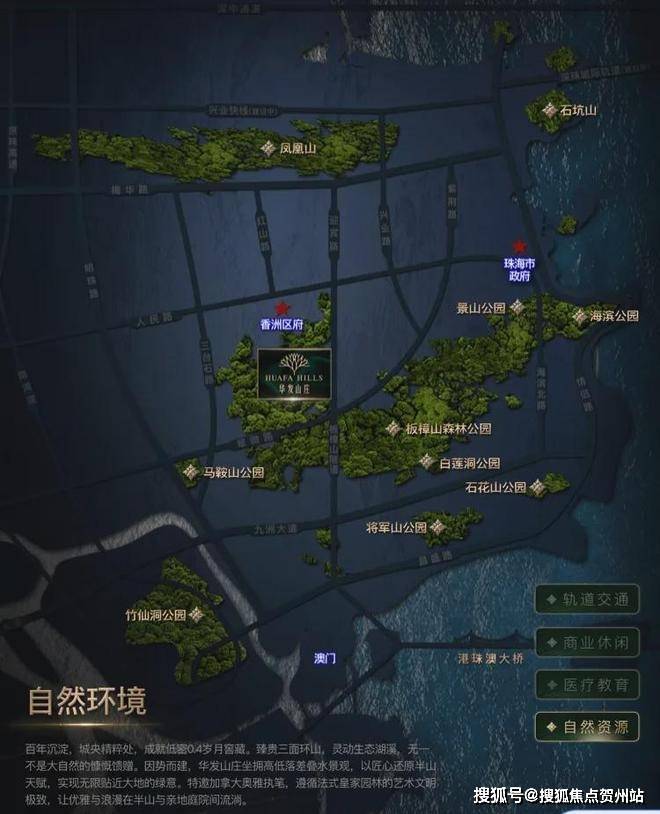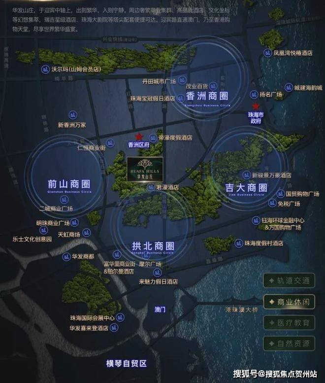 华发山庄,坐落于珠海主城区——香洲区核心。香洲,沉淀了40多年的醇熟配套与政经大脉,集萃着珠三角资金流和信息流,抵达澳门仅约5公里,距港珠澳大桥约10公里。由岁月积淀衍生的质变,往往是华发山庄此类顶豪的择址所在,增值契机不言自明。