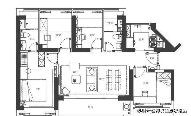 家政阳台定位,6人位餐厅满足多人就餐,主卧独立卫生间