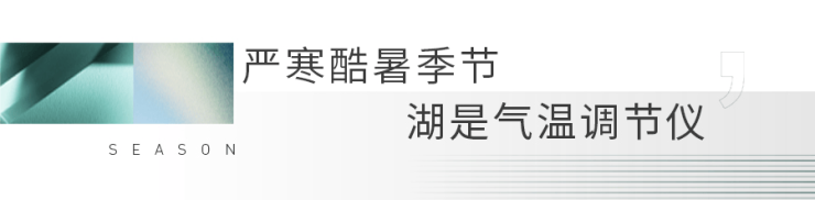 由于湖风的调节,湖滨地区冬暖夏凉、夜暖昼凉,舒适的气温对人体健康更有好处,轻松实现四季清爽朗阔。