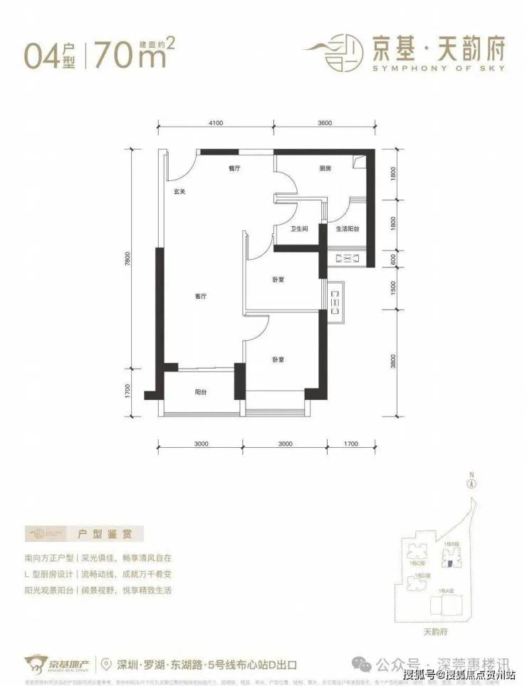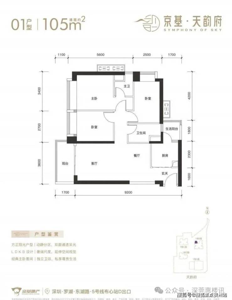 京基天韵府,项目位于深圳市罗湖区东湖街道,东依丹平快速路、深圳水库,南邻布心路,西接东晓路,北至东湖路,距离5号线“布心站”300米,7号线“太安站”700米范围内,属于“双地铁”物业,位置优越,交通便利。