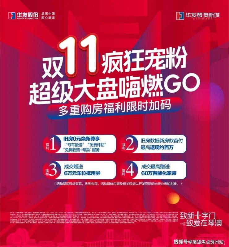 11月一开始,琴澳新城售楼处的繁忙景象已成为楼市新的风景线。琴澳新城推出“双11疯狂宠粉·超级大盘嗨燃GO”活动,为广大客户提供了多重购房福利,以旧换新百万返现、价值6万元车位抵用券、最高价值60万元的智能化家装等限时红利加码,为置业路上增添满满幸福感。
