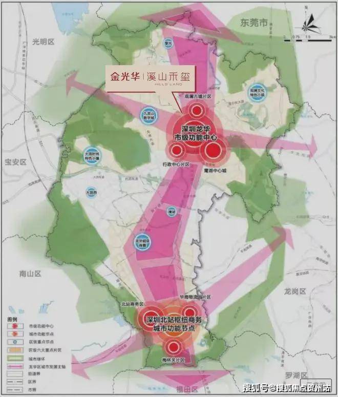龙华占位广深港科创中轴,定位为“都市核心区”;观澜位于梅观创新走廊上,以“一轴双芯”磅礴规划,享“五大中芯”发展红利, 坐拥龙华近7成产业,形成了千亿级产业规模,吸引华为、富士康、迈瑞医疗等世界500强巨头进驻,头部力量构建产业发展高地。