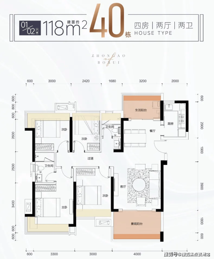 户型面积:40 / 41栋 104㎡(朝南) 118㎡(南北)