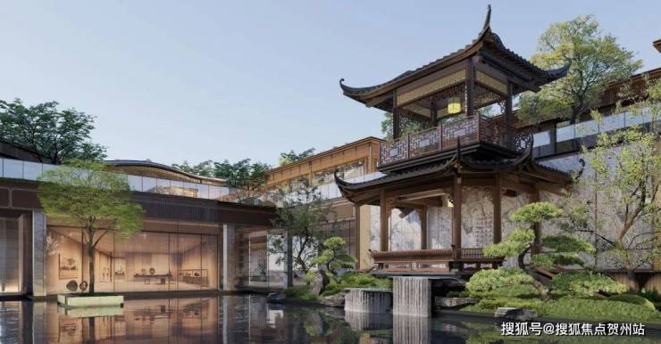 园林设计以《千里江山图》为灵感蓝本,巧妙融合岭南四大名园精髓,复刻佛山梁园"半边亭"。通过"漫卷云章"、"金水澜庭"、"琉璃水院"三进式景观轴线,呈现移步换景的东方美学。