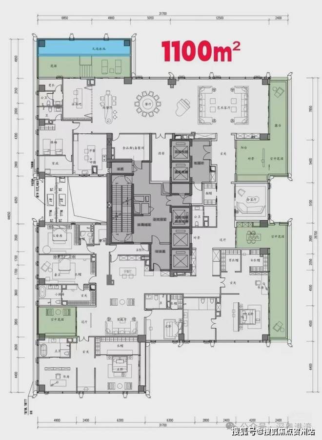 高层住宅的公区设计至关重要。本方案以内部庭院为中心,二层设人行天桥连接休闲区;三层规划户外花园和泳池。