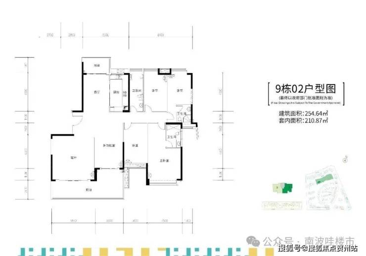 9栋,两梯两户,建面约255-259㎡五房大平层户型