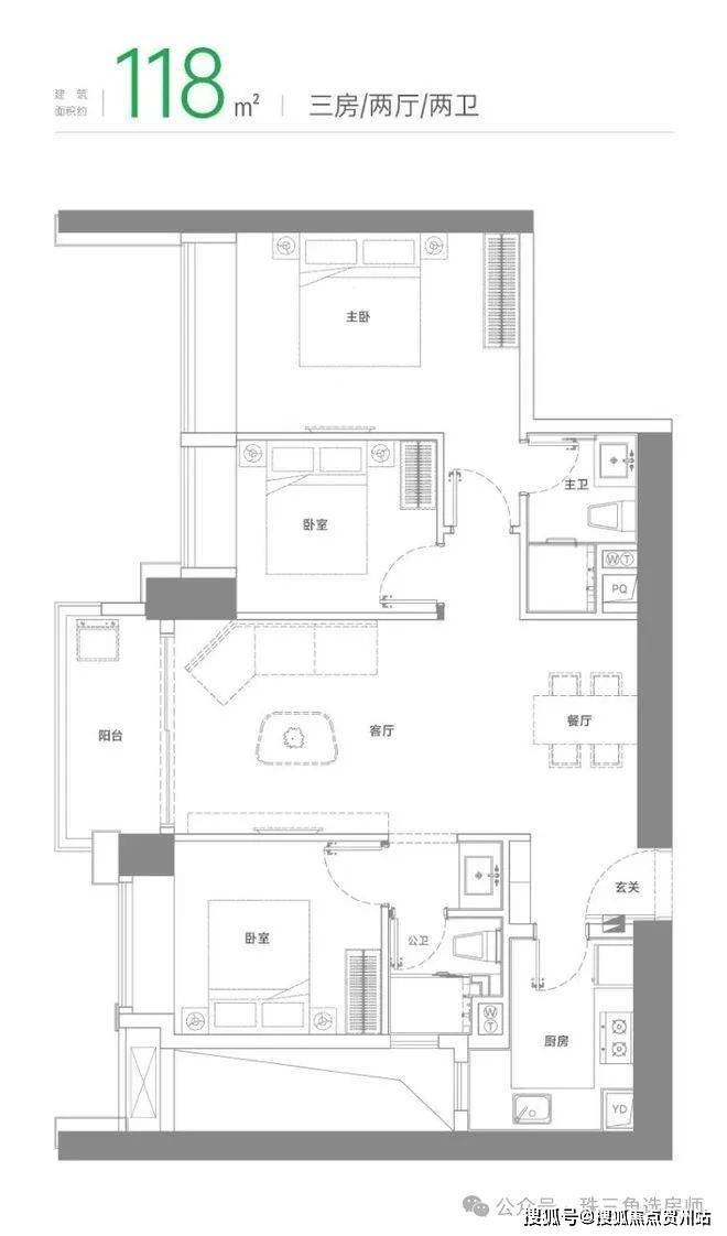 建面约118㎡三房两厅两卫