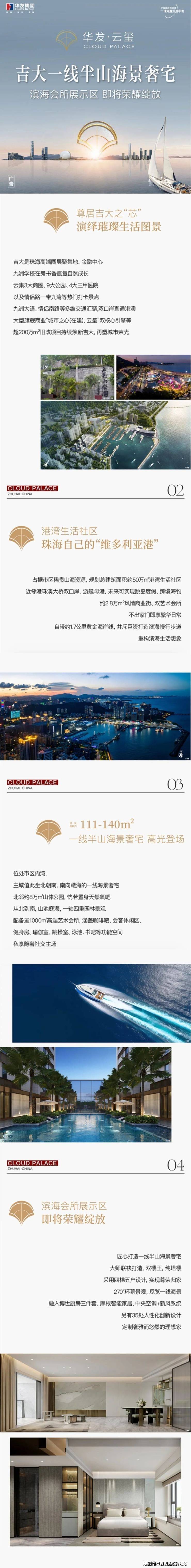 华发云玺样板房和会所预计7月初亮相,预计在7月下旬推出首批产品。项目产品四梯五户,建面约111-140㎡的一线半山海景奢宅。
