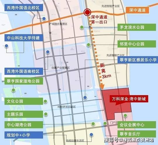地铁与交通:距深业通道出入口约 3km,30 分钟直达深圳前海;规划接入广州地铁 18 号线延长线,未来跨城通勤便捷;紧邻中山新客运码头,多航线直达港澳及深圳;周边有翠亨快线等主干道,日常自驾与跨城出行高效。