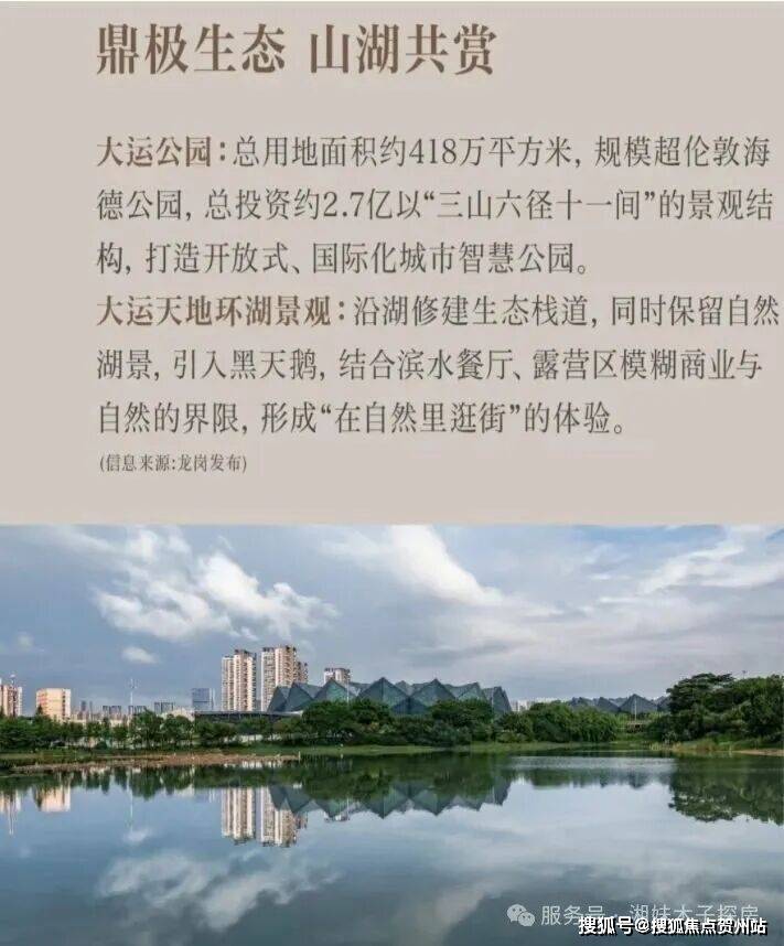 坐享大运公园(约418万㎡)、龙城公园(约189万㎡),环境优美,绿化率超50%,绿化率是福田中心的5倍、前海中心的4倍,是深圳首个“国家级生态示范区”。