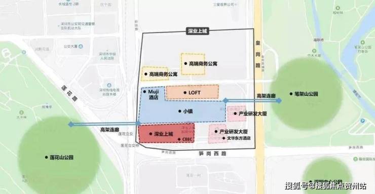 【1】连接山体公园,坐享自然景观;独特的区位是深业上城最大的优势 最大的优势是横越深圳三大城市公园,位于莲花山公园与笔架山公园之间,远眺中心公园,尽享4700亩城市绿肺。主干道彩田路、笋岗西路和皇岗路将项目环绕呈围合之势,北与三星视界厂区相接。